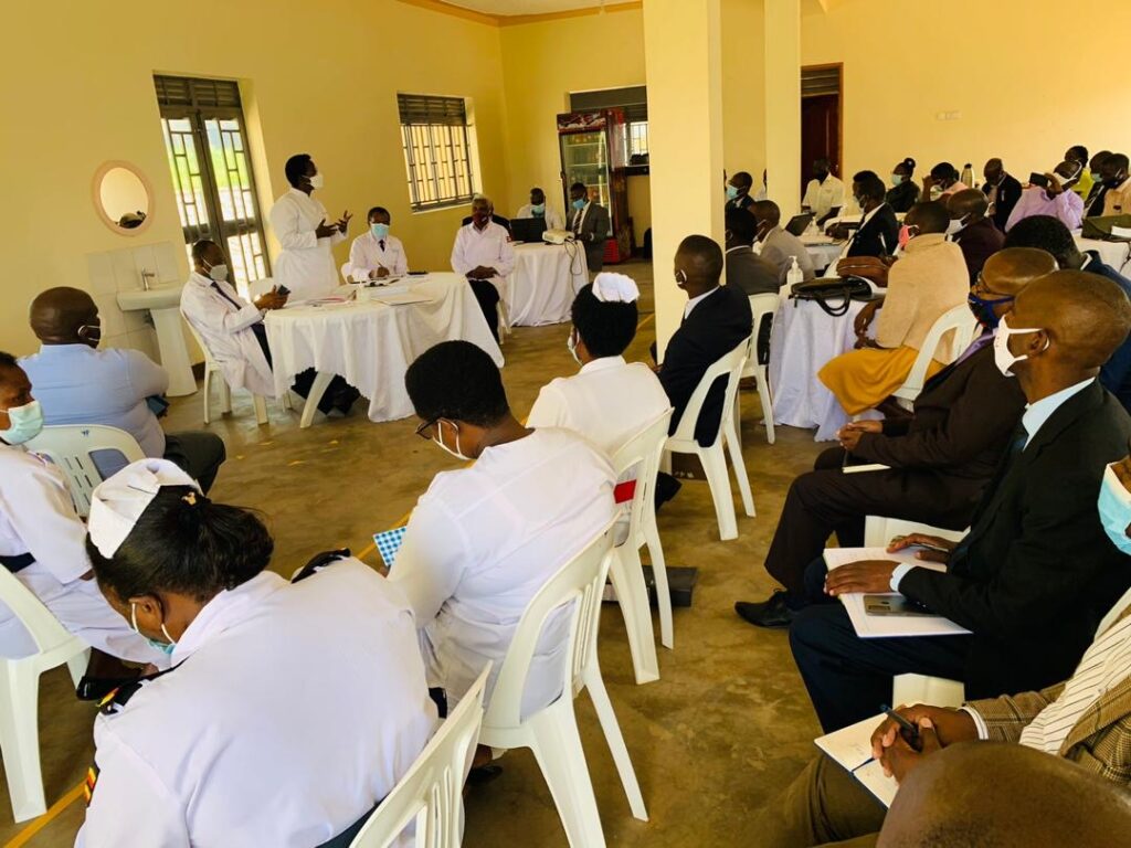 Uganda Ministry of Health Permanent Secretary, Dr. Diana Atwine, addresses the Mbarara region district health teams at Mbarara Regional Referral Hospital on the importance of continuation of services for maternal and child health amidst the COVID-19 pandemic