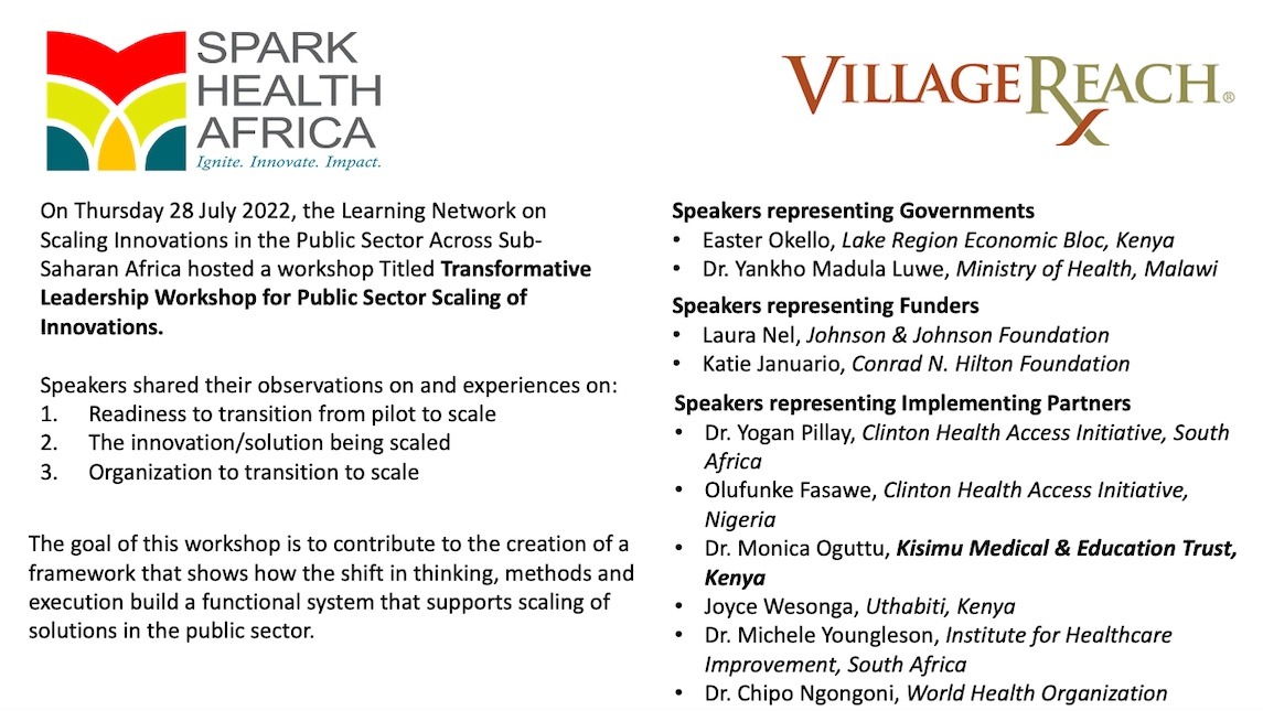 2. Spark Health Africa ran a workshop on ‘Transformative Leadership for Public Sector Scaling of Innovations’
