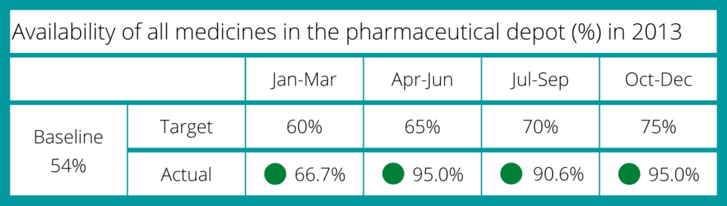 Six months into implementation, the medicine availability at the depot had increased to 95% from a baseline of 54%.
